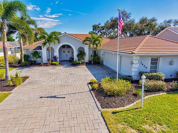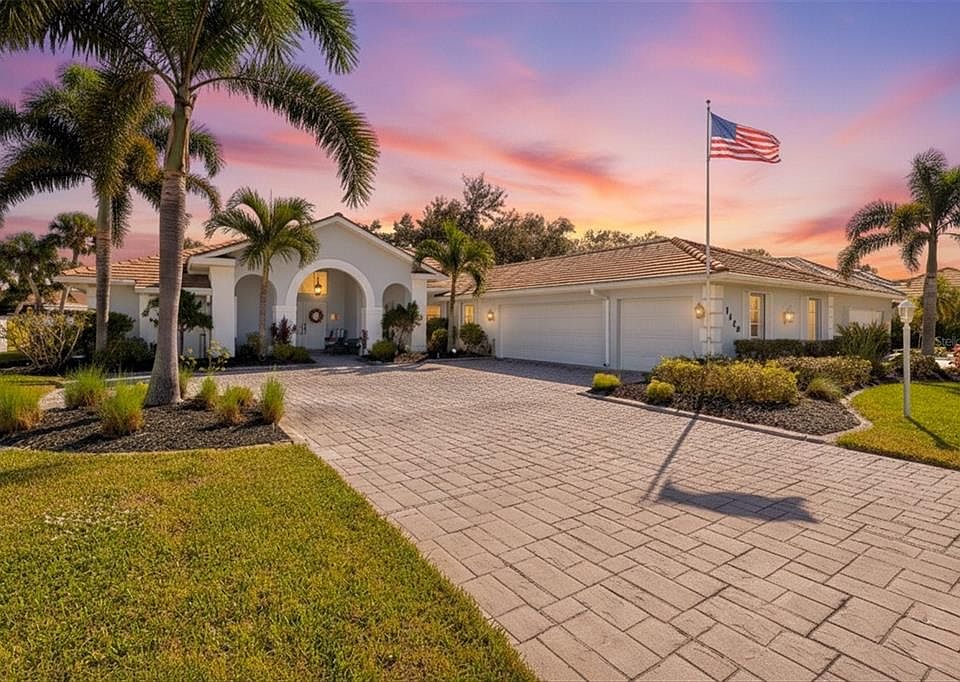 Welcome to Brenner Park in the desirable Waterford community of Venice, where elegant design meets relaxed Florida living. This 3-bedroom, 2.5-bath pool home with a 3-car garage and bonus room offers both sophistication and functionality in every detail. From the moment you arrive, the lush landscaping, wide pavered driveway, and Mediterranean-style tile roof create an impressive first impression. Archways frame the inviting front porch, leading to double entry doors that open into a bright and airy foyer. Inside, soaring ceilings and abundant natural light fill the formal living room, highlighted by plantation shutters and graceful architectural details. The formal dining room flows seamlessly into the family room and kitchen, perfect for entertaining. The kitchen features gleaming granite countertops with bar seating, stainless steel appliances, ample cabinetry, and a cozy breakfast nook lined with windows for morning light. The oversized owner’s suite provides direct access to the lanai and pool area, complete with a walk-in closet and luxurious ensuite bath featuring dual vanities, a soaking tub, and a walk-in shower. The split floorplan ensures privacy, with a secondary bedroom featuring its own ensuite bath that conveniently doubles as the pool bath. A large bonus room offers endless versatility, ideal for a game room, home gym, media space, or guest retreat. The spacious laundry room includes a sink and abundant storage for added practicality. Step outside to the screened, pavered lanai and discover your private oasis. The sparkling pool and spa invite relaxation, while the outdoor kitchenette makes it effortless to host family and friends. Situated outside of any flood zone with no CDD fees and a low annual HOA, this home offers peace of mind and convenience. Waterford residents enjoy close proximity to 27 holes of championship golf, a heated pool, lighted tennis and pickleball courts, a clubhouse with fitness center, and a vibrant social scene with golf membership optional. Just minutes from I-75, U.S. 41, beautiful Gulf beaches, shopping, dining, medical facilities, and the new Sarasota Memorial Hospital, this home truly captures the best of Florida living. Move right in and experience the lifestyle you have been dreaming of.