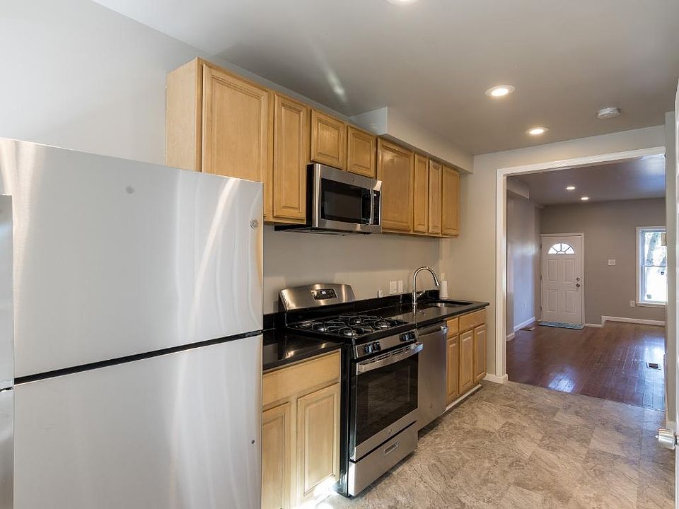BEAUTIFUL 2 BED ROOM 1.5 BATH ROOMS TOTAL REHABBED LEAD FREE HOUSE, with Stainless steel kitchen appliances fridge,microwave,dishwasher and fridge, garbage disposal, Lots of cabinet space, hard wood floors,updated bathroom ,ceiling rooms throughout, washer dryer in the basement , room for storage , rear back fenced in yard , NO PETS , HVAC