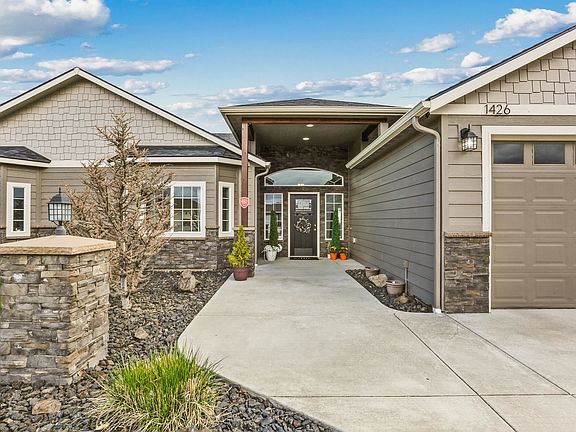 Nestled within the picturesque Deer Park golf course on the 18th fairway, is this spacious 1800+ sq ft rancher. This 3-bedroom 2 bath home features a great room w built-in shelving, a large kitchen with granite counters, full tile backsplash, under-cabinet lighting and raised eating bar. Plus, revel in the convenience of a no-step entry for easy access, central A/C for year-round comfort, and a stunning entry foyer boasting a see-through gas fireplace. Step outside to the vaulted large back patio and enjoy the views of Mt. Spokane and the golf course. With a fenced backyard and a 3-car garage and charming stone accents, this home truly has it all. Don't hesitate, schedule your viewing today and make this your forever home!