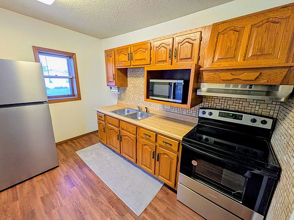 Tired of living in a large complex with tons of noisy neighbors? This cute two bedroom one bath main level duplex has been renovated with new stainless steel appliances, new flooring, and fresh paint. Conveniently located near Avera Hospital, bike trails, bus route, and downtown. Features include custom like kitchen cabinets & ceramic tile backsplash, full bath, lots of closet space, and off street parking. Detached garage available for additional fee. Water, trash, lawn care and snow included. Tenant pays gas and electric. Online application, electronic rent payment, and virtual tour available! 12 month lease. One off street parking space included. Detached garage available for additional fee. Water, trash, lawn care and snow included. Tenant pays gas and electric.