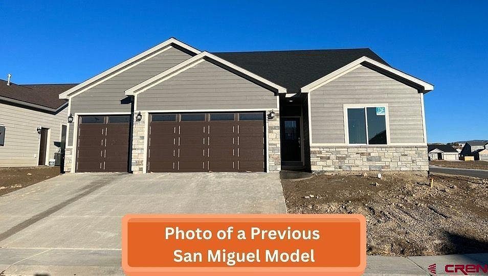 Ridgeline Homes' San Miguel model with 3-car garage features an open-concept living, dining, kitchen with extra-large kitchen island and spacoius pantry. Soft close doors and drawers throughout, stainless appliances including gas or electric range/oven, refrigerator, dishwasher and microwave. Master bath with dual comfort height vanity, step-in shower and tile flooring, walk-in closet with barn door. Three additional bedrooms and a full main bath. Laundry room with cabinets with washer and dryer included! 9ft ceilings throughout, hand-trailed textured walls, ceiling fans in living room and master bedroom, bullnose corners, LED lighting, forced-air gas heat, central air conditioning. Three-car garage with openers and keypad entry. Construction of home will commence upon contract with a completion date approximately 90 days from contract. Buyer can choose from a selection of cabinet colors, granite countertops, laminate flooring, tile, and fixture finish options. Back fence of 6 ft cedar can be added for an additional cost as well as additional upgrades including gas or electric fireplace, tile showers, shower doors, tiled kitchen backsplash, on-demand hot water, garage utility sink. Make this brand new, semi-custom beautiful Ridgeline Home your next home! SELLER WILL CREDIT $7000 TOWARDS BUYER CLOSING COSTS AND/OR INTEREST RATE BUY DOWN IF BUYER CLOSES USING ONE OF SELLER'S PREFERRED LENDERS, ACADEMY MORTGAGE MONTROSE OR SYNERGY ONE LENDING MONTROSE. (Photo is of a previously built San Miguel model.)