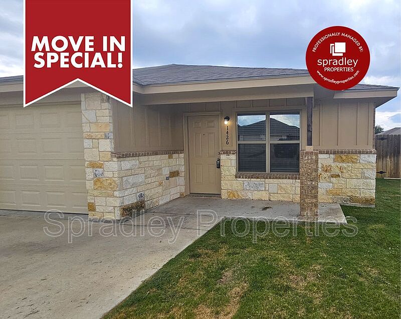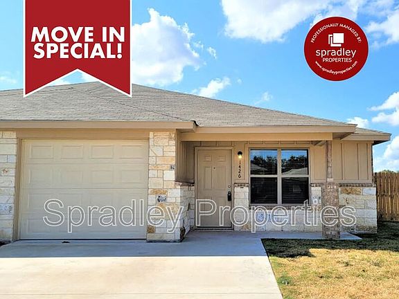 MOVE IN SPECIAL First full months rent free if you sign a 12 month lease! Stunning 3-bedroom, 2 bath, 1 car garage duplex. Features include: stained concrete floors, granite counter tops, kitchen appliances, washer/dryer connections, and fenced backyard with sprinkler system. Lawncare is provided. Small pets under 25 lbs welcome! Conveniently located less than 2 miles from Academy schools and approximately 7.5 miles from I-35 in Belton. All leases are required to participate in a Resident Benefit Package at a monthly cost up to $30.00. Renter's Insurance is required prior to obtaining keys. *Fees for Resident Benefit Package are not included in the rent amount shown.* Availability dates are estimates and subject to change without notice. Rental prices may change without notice unless applicants have signed a lease agreement. Pictures taken may be prior to current resident.