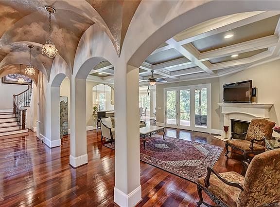 This exquisite European-inspired quality built custom home includes an elegant turret, barrel arches, and cross vaulted ceilings. One of a kind with open floor plan, custom cabinetry, gourmet kitchen, theater room, impressive wine bar, heavy molding & details. Brazilian Cherry Hwd & travertine/porcelain tile flooring throughout. Private backyard with covered brick porches and a wood burning fireplace overlooking the Freedom park. One of the few homes with level access to the Freedom Park. Walk into the beautiful Freedom park from the backyard gate or walk down a few homes on Lilac road to the park entrance. Short commute to uptown, airport, SouthPark & medical centers. Lower level area with the ceiling height of more than 9ft was completed on 2017 and could be used as separate living quarters/in-law suite with its own entrance, living area, bedroom/bathroom, kitchen & laundry.