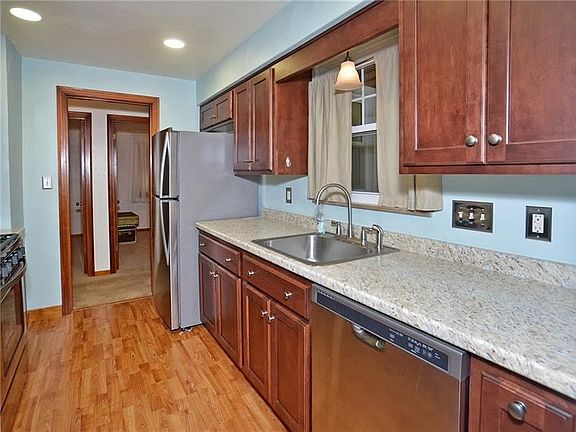 GREAT CURB APPEAL ON THIS ENTRY LEVEL RANCH LOCATED IN ROSEDALE. Kitchen updated in 2015 includes newer cabinets and counters, breakfast bar/desk area. SS appliances include a 5 burner gas stove, refrigerator and dishwasher. Main bath updated in 2018 with new flooring and a Bath Fitter step in shower. Dining room features built in storage...doors below and shelves above with glass sliders. Walk out from the dining room to the large, 3 season room and access, to enjoy the level back yard. Basement is clean and finished with extra storage under the steps. Well maintained home with new, or newer features including garage door (2017), A/C (2017), furnace (2011), windows (2017), roof (2006), flat roof w/ gutters (2017) and attic fan (2019). CODE COMPLIANT and PASSED DYE TEST. TRULY MOVE IN READY.