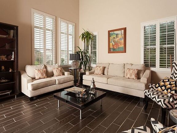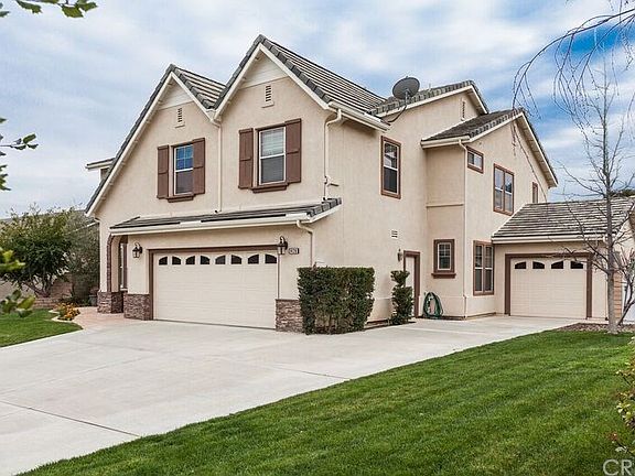 Seeing Is Believing - perfect Upgraded Pool Home !!!! Spacious home with 3,283 square feet and 3 car garage, 5 bedrooms, 3 bathrooms with ceiling fans in most rooms. Laminate wood flooring throughout upstairs including stairs with Wrought Iron staircase . Open floor plan with formal living room and a separate dining room. Large family room and spacious new upgraded kitchen cabinets. Kitchen features granite counters, upgraded stainless steel appliances, newly refurbished cabinets. Custom upgraded flooring, crown molding, baseboards, window trim, and shutters throughout. Entertainers dream backyard with salt water pool and spa, with a solid wood covered patio with ceiling fans installed and built in BBQ. Other upgrades include seamless rain gutters, water softener, walk in closets for bedrooms, and recent interior/exterior paint. This home has VERY LOW taxes - only 1.12% (Includes Mello Roos).