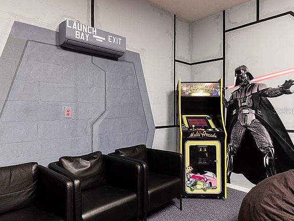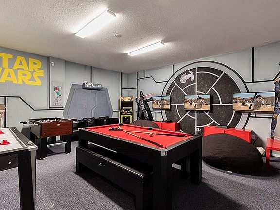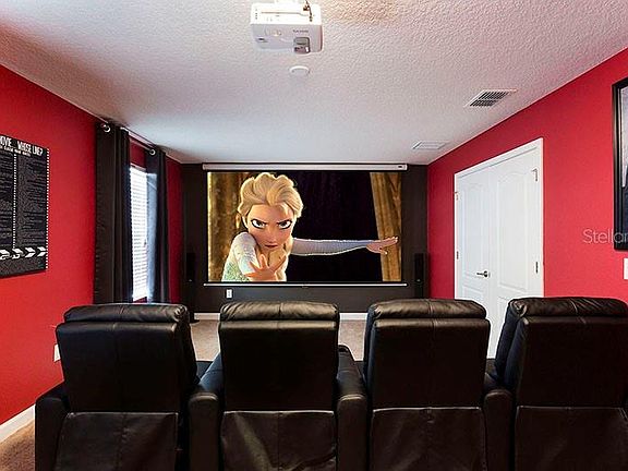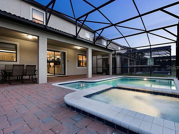 SPECTACULAR Opportunity to own this AMAZING Rental Investment Home.. This fantastic Pool home offers over 3,800 square feet of refined living space with 8 bedrooms and 5 baths, two master suites, breakfast bar, theater room, second upstairs living space, game room, and resort like outdoor living. Elegant foyer to the open kitchen and living room with stainless steel appliances, tile flooring, and very tasteful furniture. Just outside the sliding glass doors you will find that relaxing and entertaining is made easy with the covered patio space and screened in, oversized pool. Guest bedrooms boasts magical touches for kids of all ages, perfect for short term rentals. The theater room features amazing chairs and screen projector. This home has great proximity to all of Champions Gate amenities, including the resort style pool with waterside and cabanas, Lazy River, tiki bar, fitness center, movie theater, game rooms, volleyball courts, and public 18-hole golf course with driving range and putting green! Zoned for short term rentals and just 6 miles away from Disney makes this the perfect investment opportunity.