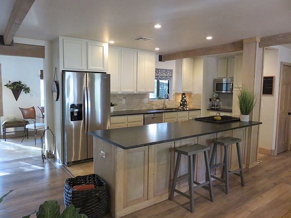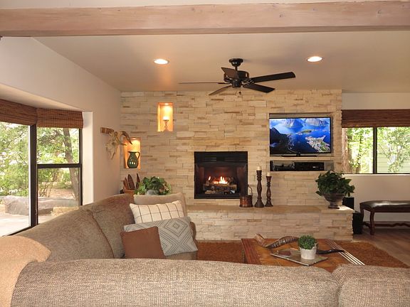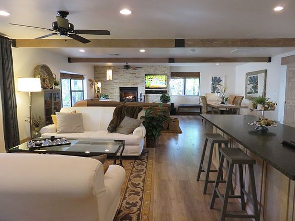 Imagine...the soothing sounds of nature,Santa Barbara style interior design,an entertainers dream back yard...WOW!These are just a few of the amenities that make this move-in-ready home so special.Nestled among mature trees,it sits on a level,fenced lot ,and is located close to everything.It boasts a winding paver driveway,leading to a detached,extra long 2 car garage plus RV pad.Inside,enter into it's wide open floor plan,smooth wall finishes,beamed ceilings,custom woodwork and flooring.The kitchen's crisp cabinetry,granite counter tops,and SS appliances serve to enhance the beautiful stacked stone fireplace that anchors it all,creating an enjoyably relaxing atmosphere.Step out on to the spacious patio,leading to the stone and timber gazebo with beautiful outdoor kitchen.It features a high end SS commercial grill,sink,storage,and a wood burning fireplace.An adjacent pizza oven is surrounded by a choice of seating and dining areas.That's not all!There is a separate entranced"flex"room that can serve as a mother-tn-law suite,office,or rental.A must see!Call for an appointment 602-384-5405.