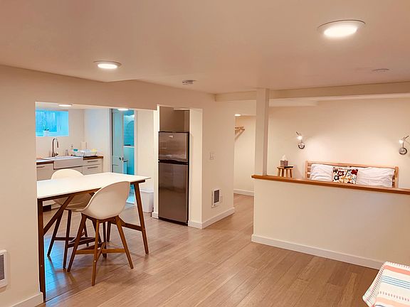 Lovely basement apartment with lots of light and air. Separate entrance. Clean modern kitchen, gorgeous bathroom with heated floors and rainshower. Close-in NE neighborhood, minutes from everything wonderful Portland has to offer: Alberta, Mississippi, N Williams, downtown and the Pearl. PDX International is less than 15 minutes by car. Bus lines #8 and #24 are very close by. Ample street parking. Note: the bedroom and main living space are separated by a knee-wall, not a full wall. Looking for long-term renter but am open to conversations about different situations. I live upstairs with my teenaged son. We're pretty quiet and we'd like our downstairs neighbors to be. We've been lucky to have had respectful, easy-to-live with renters to date and would like to continue the streak. Sorry, no animals. We've got a nervous kitty who lives on the property. Household amenities: Easy access to clothes washer/dryer (shared). RF, electric stove, dishwasher in unit. Luxurious bathroom with heated floor and rain shower. Kitchen table and chairs. Countertop appliances (microwave + toaster oven). Couch, coffee table and set of drawers (optional) Storage space. Utilities included with rent: water, garbage & recycling, composting, Internet. Utilities renter pays: electricity, for both heat and power. Not accessible, it is a basement apartment with a stairwell entrance. I will be showing the apartment over the weekends (until rented) and accepting applications through TurboTenant starting Friday, January 3, 2025. $55 application (screening) fee paid to TurboTenant. Text or email for more details. Looking for long-term renter but am open to conversations about different situations. Rent price includes water+ sewer, garbage + recycling, and Internet. Renter pays electricity bill for heat and power.