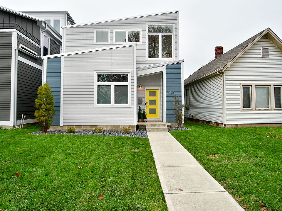 Wow is all I can say about this new home that is located within a short walk to the hottest bars and restaurants in Fountain Square and the cultural trail. Features 10' main floor ceilings, with a spacious living space. Custom kitchen counter top with a handcrafted Indiana walnut inlay, stainless steel appliance package complete with built in wine cooler. Ready to retreat, settle down in your second level family room nestled between the master bedroom and a second bedroom with private bath. Spacious second floor laundry room. Pamper guests in their own main floor master suite. Includes a 22x20 2 car garage WITH studio/office space on second floor and fully fenced in back yard!