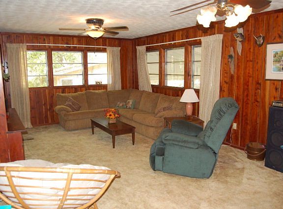 Unique waterfront home for sale Steinhatchee, Florida. Mobile home on stilts overlooks the beautiful Steinhatchee River. With an attached greenhouse with beautiful cypress growing in the middle!! Sit on your dock over the Steinhatcee River and drop a line and fish from your deck! Large mobile with carport and storage! This lot has more variety of fruit than a fruit stand, from Pears, grapes,figs, oranges, blue berry, grapefruit, lemons and more. Large live oaks. This property is Gorgeous and 1 of a kind. Use as a vacation or forever home.