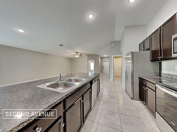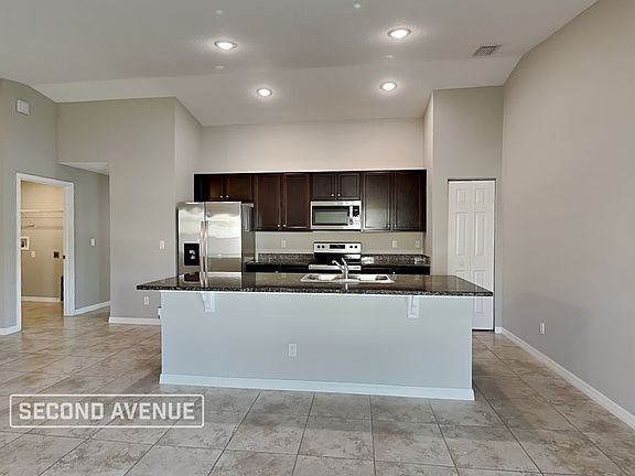 Welcome home to this modern and 4-bedroom, 2-bathroom home for rent in Palm Bay! The open concept living and dining space, complete with soaring vaulted ceilings. The chef-inspired kitchen boasts granite countertops, stainless steel appliances, a large center island, and a convenient pantry. The primary suite offers an oversized closet and en-suite bathroom, while the generously sized secondary bedrooms are bright and feature great closet space. Tile floors throughout the home provide both style and easy maintenance. This Palm Bay rental home is professionally managed by Second Avenue. Contact us and apply online today!