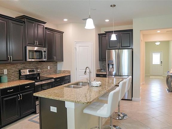 Furnished and ready to move in. Beautiful 3 bedroom, 2 bathroom home is situated on the 16th hole of the Champions Gate Golf Course and is sure to impress. Hoa fee does include Golf membership. Fantastic open floor plan with a formal living room and dining room that opens up to the kitchen. The open kitchen features plenty of upgrades from the natural granite counter tops, charming back splash, breakfast bar, pantry and stainless steel appliances. Lovely neutral, diagonal ceramic tile in the main living area and carpet in the bedrooms. Enjoy your coffee sitting on the covered, screened enclosed patio while looking out to the scenic views of the 16th golf hole. Fantastic curb appeal with a paver driveway, covered paver patio, tile roof and landscaping. This Lennar Home - Mashpee model was built in 2016 with energy efficiency in mind. Tons of amenities await in this guard gated community with swimming pools, lazy river, tiki bar, cabanas, arcade game room, fitness center, tennis courts and more. Don't let your dream home pass you by!
