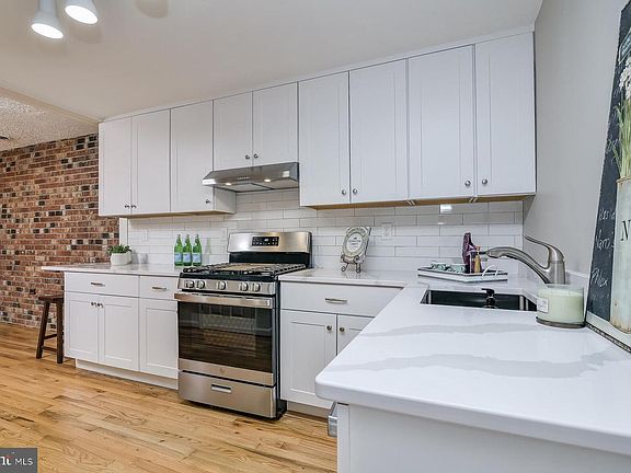 Charming Locust Point. Perfectly updated and renovated property move-in ready on quiet street with available parking on Reynolds near Silo Point. Main level with exposed brick and newly refinished hardwood flooring, formal LR/DR. Be the first chef to enjoy the brand-new kitchen w/quartz counters, workstation, subway tile back splash, new stainless appliances, full pantry and space to park your portable bar/serving cart. Rear utility/storage room, main level washer/dryer and the cutest 'half bath' all in one! Rear door opens to storage patio and hall is perfect for coat rack/hook design. Upper level with hardwood flooring, two large bedrooms, each with generous closet space and two windows; a separate office/den or additional storage area with skylight. Upper level full bath with linen closet. Newly replaced front windows. The entire house has been freshly painted, including the unfinished basement. Easy walk to everything you need; grocery, shops, restaurants, Ft. McHenry, the water taxi and Latrobe Park with play area, tennis/basketball courts, home of the best dog park and annual festival in the city! Active Community Association. Live in the heart of the city's commerce center surrounded by water and enjoy the view from wherever you roam! Welcome home.