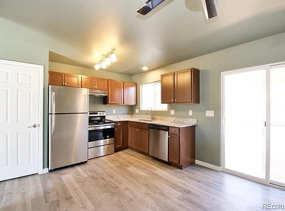 Beautiful remodeled tri-level home with 3 bedrooms and 1.5 baths 1320 sq ft 2 car garage. This home has been updated with new carpet, hardwood floors, tile in the bathrooms and shower. Updated kitchen with granite counter top, new cabinets and new stainless steel appliances. New roof, new siding and paint, new deck in the backyard, and new windows throughout home. Great location, its only a 10 min walk to the nearest restaurant and grocery store. 10 minute drive to I-225 and 25 minutes to DIA.