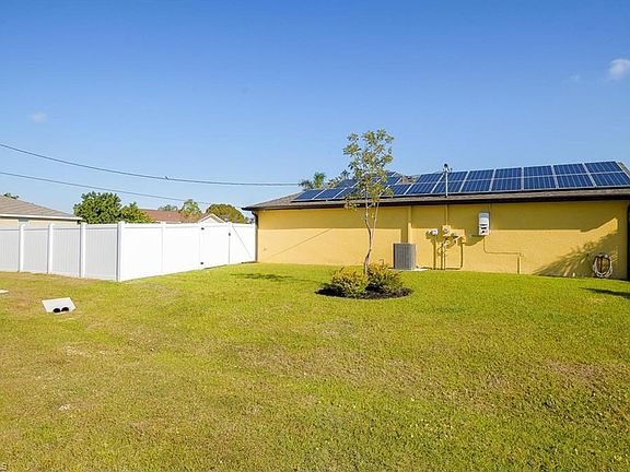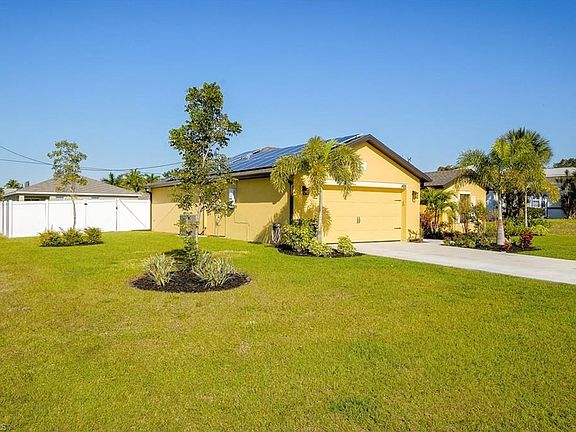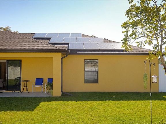 BETTER THAN NEW! This 2015 built LGI home offers 3 spacious bedrooms, and 2 beautiful bathrooms all under 1504SF. This immaculately maintained home boasts a 20kw SOLAR POWER SYSTEM, which produces enough electricity to cover the entire LCEC consumption and some. Upgraded high-end lighting fixtures inside and out, all new granite countertops and vessel sinks in both bathrooms, porcelain wood plank tile in living room, all new Samsung Stainless appliances in kitchen and laundry, and new 6 foot fence surrounding huge back yard with room for a pool. The oversized garage offers more than enough room for two vehicles and room for storage. You cannot build this home with the upgrades for the offered price. Schedule your showing today! This is Florida living at it's finest!