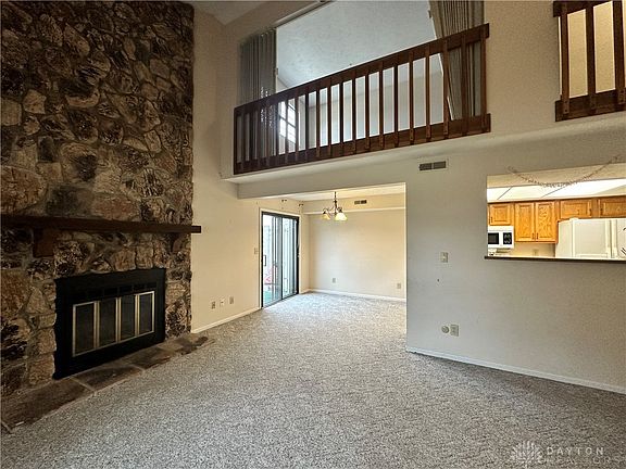 Welcome to Sycamore Creek Community with its primary location and great amenities. Beautiful two-story Townhome/ Condo. Featuring a large front porch, spacious living room with vaulted ceiling, soaring natural stone hearth and WBFP. Private patio with sliding glass door conveniently located off the dining area and the kitchen. Ample countertop and cabinet space in the kitchen, a half bath and laundry with shelving and attached garage entry, all complete the first floor. Upstairs features including spacious primary bedroom with full bath and walk in closet. The loft with its own closet and accordion doors, can be used as a second bedroom or home office. New Roof, water heater and HVAC/ Heat pump 2020. Community offers pool, clubhouse, tennis court and half basketball court. Minutes to WPAFB & Wright State University, I-675, shopping and more!