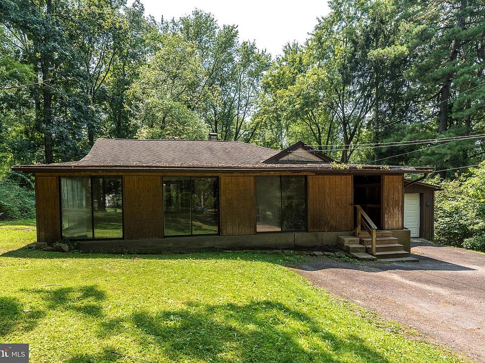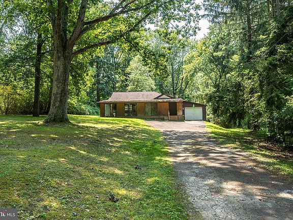 Rustic 3 bedroom rancher in a secluded country setting situated on .61 acre on a private wooded lot. Set back from the street, the long driveway creates plenty of off street parking along with a large oversized garage offering the potential for a workshop area or storage. The kitchen is open to the living room with the laundry and utility room nearby and 3 bedrooms and hall bath completing the main level. The heater was converted to gas approximately 6 years ago and the property is serviced by public water. Close to Willard H Markey Centennial Park with its walking trails, skate park and driving range with schools, shopping, parks and Lake Nockamixon nearby. The house condition is Fix Up and is being sold in "As Is" condition. The Buyer is responsible to Order and provide Township U&O and for any required repairs.