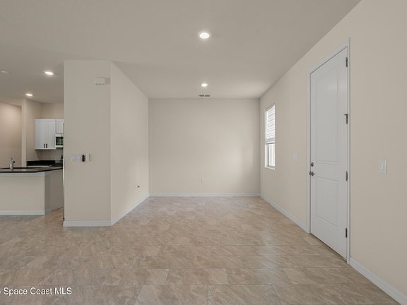 All-inclusive EcoSun home available for rent in Palm Bay, near major employers including L3Harris, Renesas, Northrop Grumman, and Health First. Built in 2022, the Emilia Model with flex space offers a split floor plan with tile flooring in the main living areas, carpet in bedrooms, and smart home technology throughout. The kitchen includes granite countertops, stainless steel appliances, white shaker cabinetry, a pantry, and an island overlooking the main living area. A pocket sliding glass door opens to a covered patio and an oversized fenced yard that backs up to a private preserve. The home also features a washer and dryer and a two-car garage. Rent includes electricity, water, sewer, trash, lawn care, and pest control. Pets considered! Professional photos coming soon!