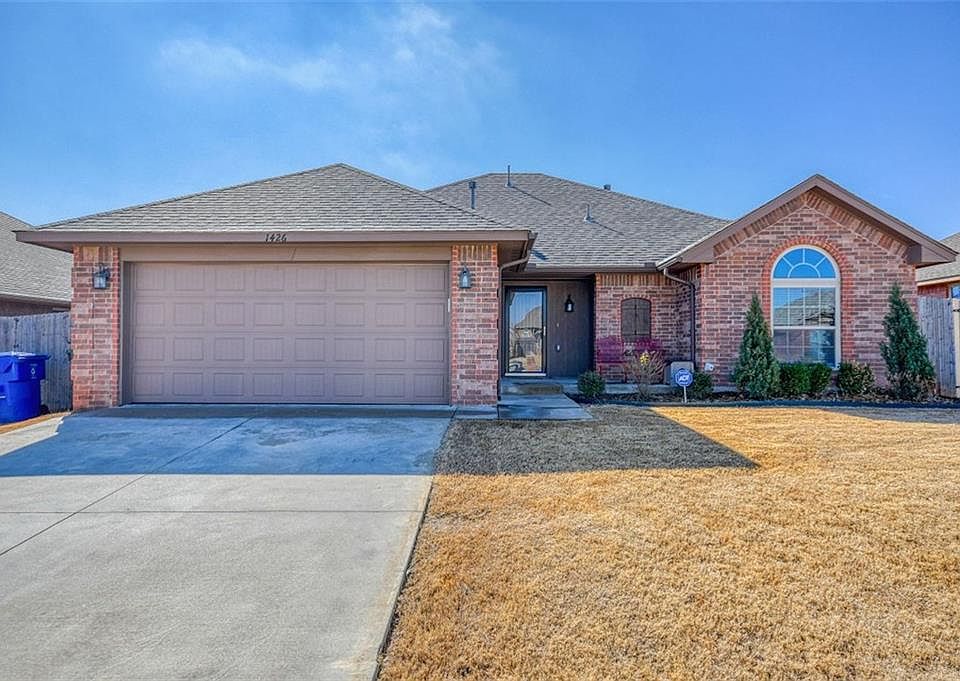 Home sweet home is calling your name with this east side gem! Boasting 3 bedrooms, 2 bathrooms; you notice its charm the minute you pull up to the curb. Fresh new carpet greets you as you enter the home making it turn-key and ready to move in! Crown molding accents the living room with farmhouse fixtures and creates a cozy, modern feel throughout. The open concept is perfect for entertaining guests of all numbers! Stainless steel appliances sparkle off the granite counter tops and the stained cabinetry provides ample storage in your well-laid out kitchen! The master suite is spacious, dual sinks and a tub large enough to soak all your troubles away~ Each bedroom is spacious & complete with its own closet. The overall floorplan of this home is versatile for an individual or a growing family. Go ahead and call over your friends for a BBQ and enjoy the backyard pergola that creates just enough shade to relax on a sunny Oklahoma Day. And have no worries; storm shelter is in the garage!