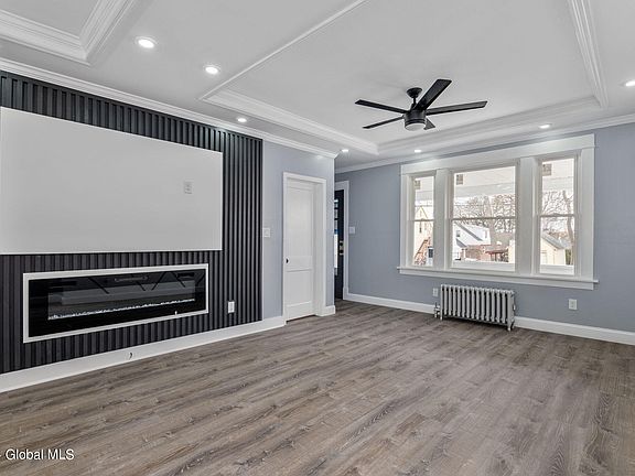 A beautifully remodeled, move-in ready home in Schenectady, NY awaits its new owners. This stunning property boasts 4 bedrooms and 2.5 modern bathrooms, including a luxurious primary ensuite on the second floor. The home features a brand new kitchen equipped with top-of-the-line appliances, two newly renovated full baths, and a convenient new half bath. Enjoy the elegant touch of new flooring throughout, ample recessed lighting, and exquisite crown molding. The first floor offers three comfortable bedrooms, and first-floor laundry for ultimate convenience. Open Living room-dining room.Additional highlights include a full basement, a 1-car garage, a newly fenced yard for privacy, and a new roof.