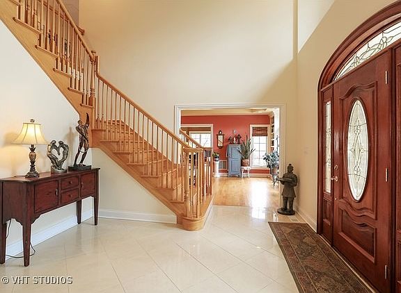 5085 sq feet plus 2500 sq ft additional in the finished basement. Brick Georgian with grace, style and appointed with amenities that everyone can appreciate. Large Gourmet kitchen with over sized center island, large bay eat in area plus granite counter-tops and cherry cabinets. Kitchen opens to family room that features vaulted ceiling, fireplace and hardwood flooring. First floor office recently painted. hardwood flooring in dining room and kitchen area. Finished basement with bath as well as a fireplace makes this area a perfect retreat and place for the entire family. Bedrooms with direct access to bath areas for privacy plus offer generous walk-in closets. Master Bath features heated flooring. Large side yard, 3 car side load garage and a beautiful patio make quite the statement on the executive style home. Allowance for your choice...
