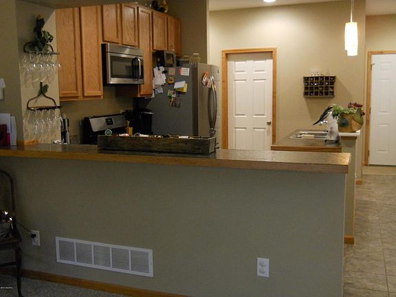 Exceptionally nice 2 story townhouse conveniently located to shopping, trails, hospital, schools. This end unit offers privacy and a wooded view. The main floor offers an open floor plan, living room, dining area, nice kitchen (with appliances included), and 1/2 bath. The upper level features 2 nice size bedrooms, full bathroom, and laundry. The walkout lower level is nicely finished with a family room, full bathroom, and mechanical/storage room. If a third bedroom was needed, that would be a possibility on this level as well. Association fees are $150.00 per month and include, snow removal, grass maintenance, trash, water & sewer.