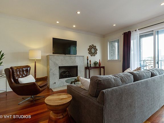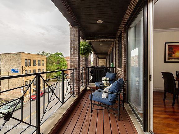 Fantastic extra-wide 3 brm/2 bath condo steps from Southport Corridor! Open floor plan w/ 9-11" ceilings & massive floor-to-ceiling-windows overlooking an enormous front terrace and back balcony! 3 outdoor areas with an amazing private rooftop deck. The entire rooftop deck is divided and assigned to each unit. See additional documents. Gorgeous Brazilian Cherry hardwood floors and architectural details throughout. Living rm/dining rm great for entertaining; custom kitchen with 42" cabs, granite breakfast bar, high-end ss apps & wine fridge. Beautiful stone and marble baths, master suite w/ spa bath and walk-in shower, walk-in California Closets. 2 exterior parking spaces included. Blaine school district. Jewel-Osco and CVS 0.4 miles. Red Line or Brown Line 0.5 miles. Amazing space and location! Nothing to do but move in. Note low monthly assessments.