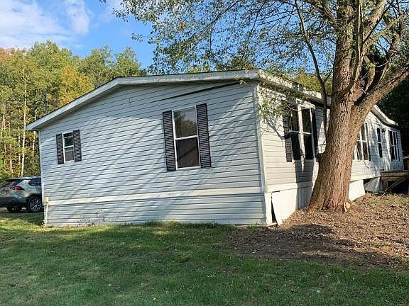 This 1988 Doublewide on fifty acres nearly bordering the state forest has much potential. There is a barn with partial horse stalls, with a well and electric to it. It is in need of repair. The home is on a cement slab. It needs TLC and some repairs as well. It's a beautiful location, offers privacy, country views, mostly wooded, has a stream running through and a small pond. Would make a great home for the nature lover or those that enjoy outdoor recreation/hunting etc.