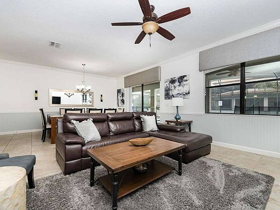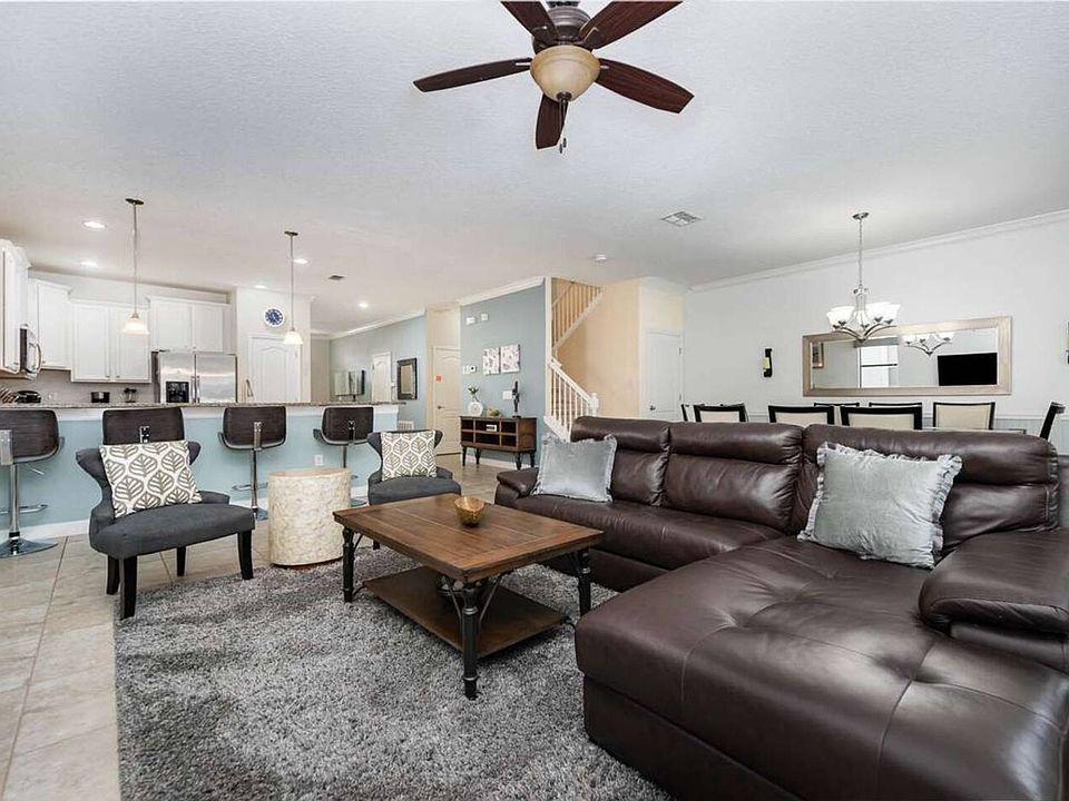 Feel at home in this spacious and modern 8-bedroom, 5-bath luxury home located in the exclusive resort community of Champions Gate. Perfectly laid out for multiple families or large groups, this two-story residence offers state-of-the-art entertainment and professional interior design, elevating the guest experience to a level not typically seen in a vacation property. Enjoy the enviable location just minutes from Orlando's renowned theme parks. Welcome to paradise, where this ultra-exclusive entertainment getaway comes complete with everything Florida vacation dreams are made of. Enjoy a heated pool with spa, arcade room, private home theatre, billiards table, character-themed bedrooms, and spacious accommodations for up to 18 guests. The downstairs offers a high-end kitchen, elegant dining area, and comfy TV viewing spot, along with a junior ensuite and the main ensuite with direct access to the screened-in lanai's heated pool and spa. Upstairs includes six well-appointed bedrooms, each with their own Smart TV, a common area with pool table and TV, and a private theatre room lavishly styled with tiered leather recliners and bar fridge. Guests have access to Champions Gate Resort's exceptional amenities including the Oasis Clubhouse, 36 holes of golf designed by Greg Norman, tennis courts, restaurants, bars, a waterpark with lazy river and wave pool, and fitness center. A grill is available for $120 per stay, with delivery, propane tank, and cleaning included. Pets are allowed at $100 per pet, but due to allergies, cats are not accepted. The property is a short drive from all the renowned theme parks, adventure, and cultural attractions Central Florida has to offer. Orlando is known for its year-round beautiful weather, family-friendly experiences, world-class shopping and dining, and endless supply of everything needed to create a perfect vacation. There are over 25 amusement parks just minutes away from the home, including the celebrated Disney World, Sea World, and Universal parks. The property is monitored and treated regularly by a professional pest control company, but being in the sub-tropical climate of Central Florida, there is still a possibility of insect intrusion from time to time. Palmetto bugs and other insects are very common in this area, and a wayward bug found inside a home is not indicative of an infestation. Champions Gate Resort has secured gate entry, and guests are required to submit a list of all names at least 48 hours in advance of check-in to ensure entry. Prime check-in time is 4:00 p.m., which could result in a longer wait time at the security gate if you arrive during that timeframe. Pool cleaning and lawn care are provided on a weekly basis. A complimentary pack 'n play and highchair are available for the kids. Blazing fast Wi-Fi and upgraded appliances are available, along with a comprehensive kitchen housewares package. Fresh linens and bath essentials are provided for every guest, and a full-size second-floor washer and dryer are included. Free onsite parking is available.