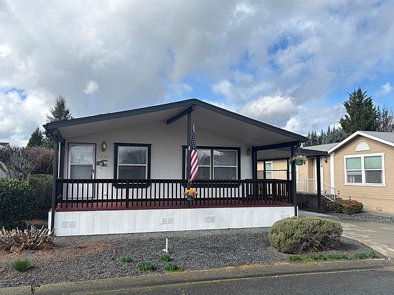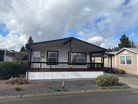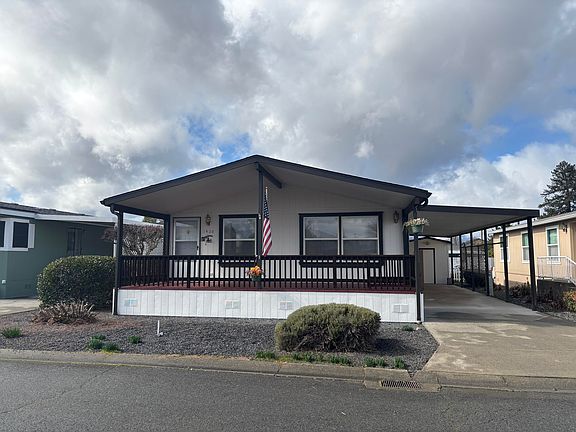 Brand new paint on this home and the shed. Decks are freshly stained. It is ready for its new owner!! This clean and well-maintained manufactured home is located in the desirable Willow Estates Park, catering specifically to the 55+ community in Grants Pass, Oregon. Featuring a spacious front deck, it offers a perfect spot for enjoying the outdoors and socializing with neighbors. Accessibility is a key highlight, as the home includes a vertical wheelchair lift to the side door, ensuring ease of movement for residents and guests. With its welcoming atmosphere and convenient location, this home is a wonderful opportunity for comfortable, community-focused living close to amenities. New HVAC was installed last year also.