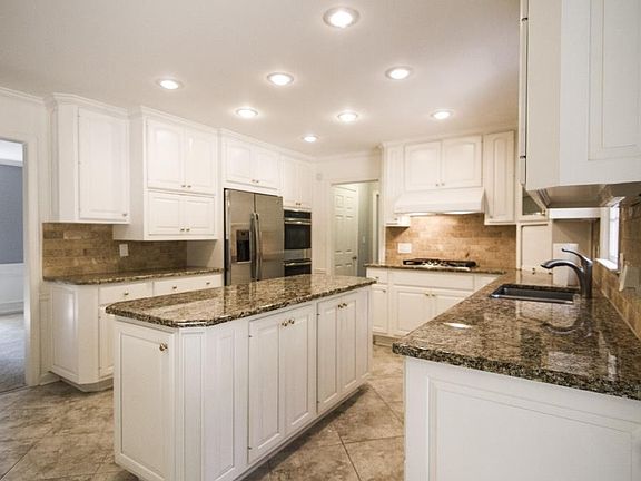 - Kitchen Features: Cabinets White, Island, Breakfast Area, Breakfast Bar, Pantry, Counter Top - Stone