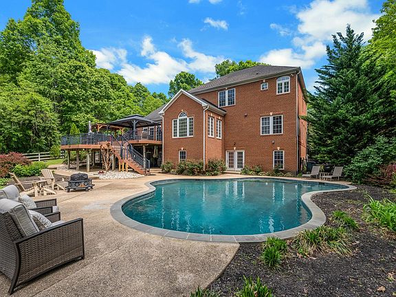 Exquisite all brick custom home situated on a private lot. Enjoy the peaceful large deck overlooking Pebble Tec in ground pool surrounded by professional landscaping. Beautiful 2 story foyer with grand staircase welcomes you. Gleaming hardwood floors lead you through the first level featuring formal living & dining room, study/den, top of the line kitchen with sun filled breakfast area overlooking 2 story family room with fireplace. Upper level features Primary bedroom with luxury bath and walk in closet; 3 additional generous sized bedrooms and 2 full baths. Ready to entertain - the lower level has it all - wet bar, theater room, club room, bedroom and full bath. Spacious 3 car garage with Tesla chargers. Available July 15, 2025.