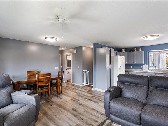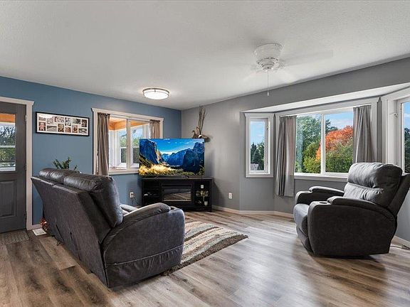 Rare opportunity to own a peaceful country retreat near the gorgeous Lake Sylvia & just minutes from town! Set on a private, 0.60-acre lot, this well-maintained, turn-key home with gorgeous curb appeal that includes new vinyl and shakes siding and a recently updated roof offers a perfect blend of comfort, updates, and outdoor enjoyment. Step inside to find a bright main floor layout featuring a kitchen bay window, updated cabinetry, granite countertops and vinyl plank flooring. The open kitchen and living areas flow beautifully into the 3-season porch with underneath storage where you'll enjoy morning cups of coffee and catching beautiful views of wildlife and Lake Sylvia through the trees. The upstairs includes 2 bedrooms featuring walk-in closets and the convenience of a full bathroom. The lower level offers a large family room, laundry room, and a versatile flex space adjacent to the 3rd bedroom that could be used as an office, playroom, or converted to a 4th bedroom. The outdoor living shines with multiple spaces to relax and entertain. The front yard includes a lovely patio with built-in fire pit and the perfect spot to enjoy a BBQ. You'll note a spacious driveway and a 12'×16' storage shed with loft and cement floor that provides plenty of room for tools, toys, and hobby equipment. With its peaceful setting, convenient location, and abundant space inside and out, this property offers the best of both worlds—quiet country charm just a short drive from town amenities.