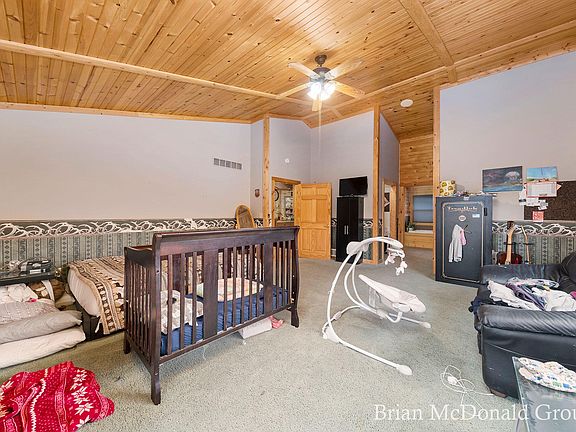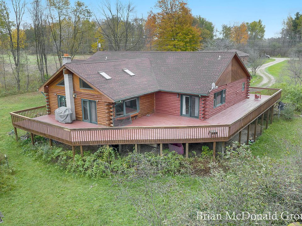Beautiful Secluded Log Home On 10 Acre Lot. Home Features: Open Floor Plan, Large Kitchen With Center Island, Dining Room Living Room, Large Owners Suite With Full Bath, Walk-In Closet, Main Floor Laundry, 2 Large Kids Bedrooms, Full Bath, Wood Flooring. Unfinished Walkout Basement Offers Plenty Of Opportunity For Additional Finished Sqft. Outside Features: Wrap Around Porch, 2 Stall Attached Garage, Private Pond, 32x68 Heated Barn Plumbed In For Bathroom. Seller Has Recently Updated, Furnace, Hot Water Heater, Pole Barn Roof, Appliances.