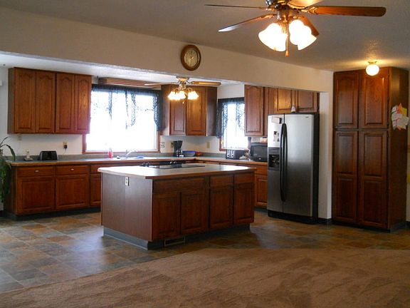 Beautiful, spacious 4 bedroom, 3 bath ranch just outside city limits. Over 4,000 square feet. Open floor plan. Fireplace. Large kitchen with nice cabinets adjacent to living area. Newer floor coverings. Dual heating. Surround sound in the basement. Deck off the dining room to enjoy the gorgeous sunsets. A must see! Seller will look at all offers!