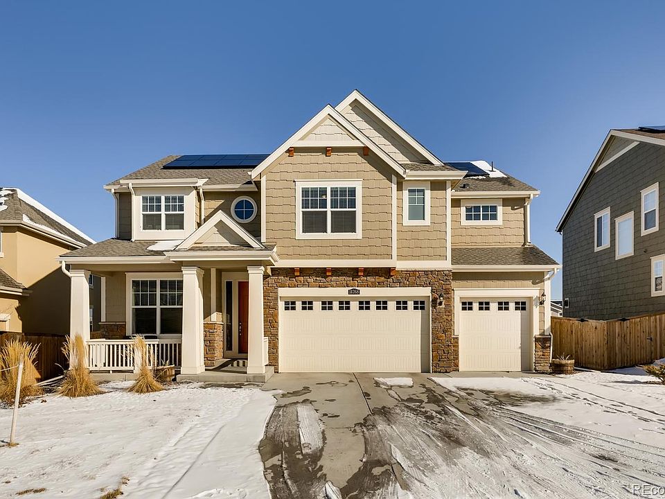 Stunning like-new Silverleaf floor plan with 5 beds/4 baths in coveted Lewis Pointe. Fantastic upgrades throughout include blinds, high-end ss gas range, french-door fridge & appliances, white cabinetry, quartz countertops, tile baths, almost new washer/dryer and full landscaping. Enjoy the bonus features of the elegant Butler's Pantry plus walk-in pantry, engineered hardwood on main level and bedroom & full bath on main level. Located upstairs are 4 spacious bedrooms each with with private bathroom access. Luxurious master bedroom with tray ceilings, spa inspired master bathroom with quartz countertops, soaking tub and direct access to laundry room from the roomy master closet! The full unfinished basement offers room to grow and storage space. An expansive covered patio provides the perfect place to dine al fresco and the lush yard is perfect for outdoor games. Great location in the award-winning Adams 12 5 Star Schools District and just minutes to parks, trails, golfing & shopping.