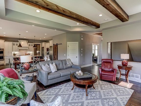 Directions 169 S to 21 S to county rd 42 West to McKenna and south to home on right., Model home for sale in the Wilds. Designed for function and entertaining, it has a family living area on each floor. Kitchen features enameled cabinets with stained knotty alder island and includes Frigidaire Professional series stainless appliances, including separate frig and freezer. 10? ceilings on the main floor are highlighted by the beamed ceiling in the great room and shiplap on ceiling in front entry. Open and delightfully bright on every level. Great curb appeal with split garages!