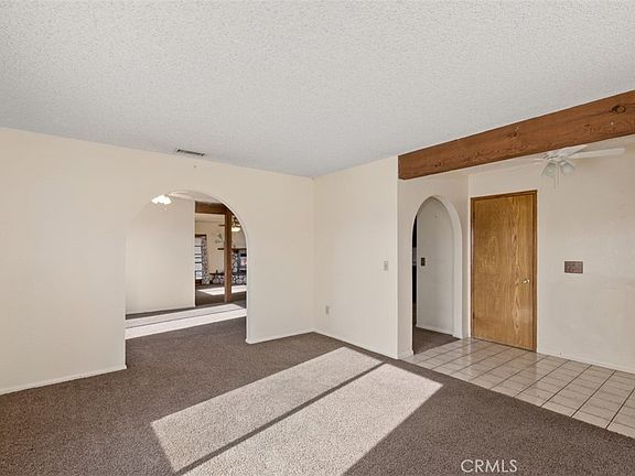 Terrific single story floor plan has open beams and large windows to let in lots of natural light. Lovely leaded glass entry door. The front and side of house and yard have nice views. Original owner. Home needs updating – original kitchen and baths. There is a formal living room and separate dining room. The family room, which is open to the kitchen, has a stone gas log fireplace and French doors leading to the covered patio. Kitchen has a large counter/eating bar area. The roomy master bedroom also has access to the patio with French doors. The HVAC system was replaced about 5 years ago
