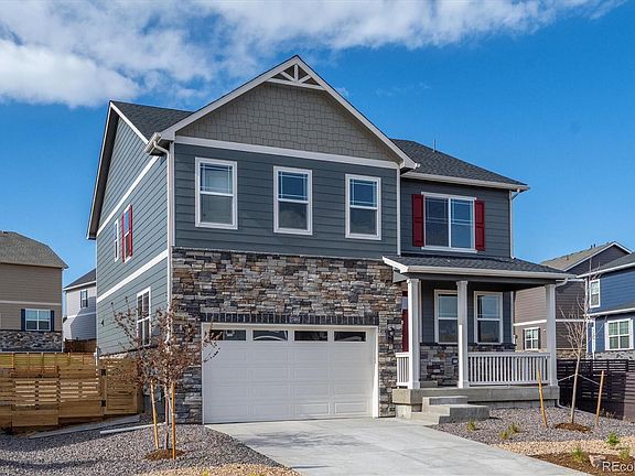 Welcome to this stunning 2-story home that combines elegance with modern comfort. The spacious, open-concept layout is perfect for family gatherings and entertaining. The gourmet kitchen boasts a large quartz counter top, Warm brown cabinetry with crown molding and hardware, and a stylish subway tile back splash. Enjoy the convenience of a walk-in pantry and an electric fireplace in the great room with floor to ceiling tile, creating a cozy atmosphere. The main floor also features hard surface flooring, a versatile den or office space, and a seamless flow into the dining and living areas. Upstairs, you’ll find a generously-sized loft, ideal for an additional living space, playroom, or media room. Each bedroom is complete with a walk-in closet, and the primary bedroom offers a luxurious en-suite bath and an expansive walk-in closet. Convenience continues with second-floor laundry and beautifully tiled floors in the bath and laundry areas. Outside, you’ll love the large, fully landscaped yard with a sprinkler system.  Enjoy your morning coffee or evening relaxation on rear deck on a walkout basement overlooking a greenbelt. This smart home comes with a modern package for added convenience and security. This home offers everything you need for luxury living in a highly functional layout. Don't miss out on the opportunity to make this house your new home! ***Estimated Delivery Date: August. Photos are representative and not of actual property***