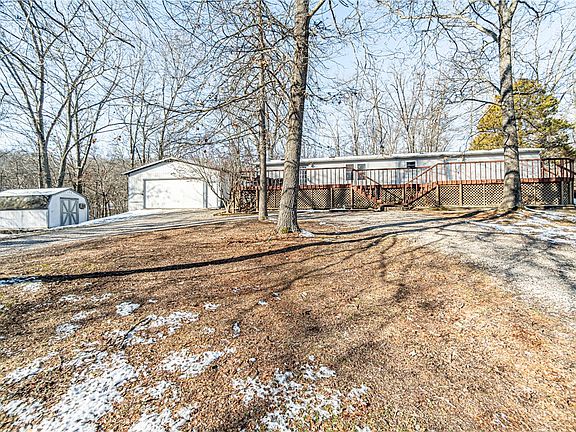 Beautiful property with views of Beaver Lake! Enjoy the serenity of lake life on over 5 acres just off of Beaver Lake. The well-maintained manufactured home on a fixed foundation boasts 3 bedrooms, 2.5 bathrooms, a split floor plan, and a spacious kitchen, dining area, and living room. The roomy master suite offers a large ensuite bathroom with a jetted tub and walk in closet. Enjoy seasonal lake views from your oversized deck with plenty of space to entertain guests. Additional features include a concrete driveway leading to a detached, 2 car enclosed garage, shed for extra storage space and 2020 HVAC with heat pump. Great opportunity to build your dream home and live in the current home while you build! Located at the end of a quiet street in a peaceful lake setting with a smooth path to the lake, this property offers everything you need and more!