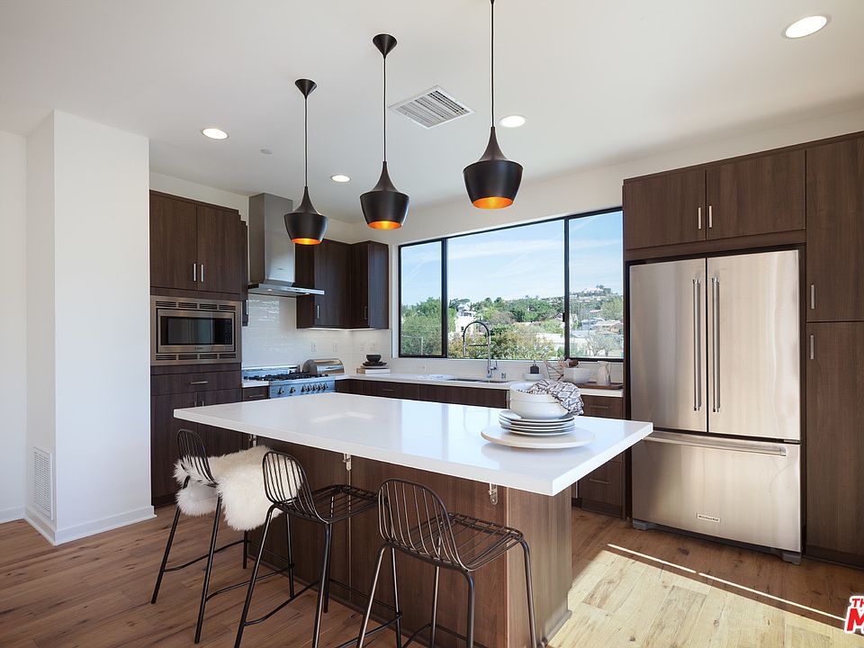 COVO, an intimate community of ten new residences by Planet Home Living. Sophisticated modern design on a quiet residential street with effortless city access. This "end unit" home is structurally independent with a private 2-car garage and no shared walls. The focal point is the third-level great room, an airy space combining living, dining and kitchen with a wall of glass opening to a large private outdoor terrace. You're nestled at treetop level taking in gorgeous views. There is wood flooring and well-proportioned bedrooms including the Master with attached bathroom featuring dual vanities and oversized shower with built-in bench. The lower level bedroom will make an ideal office, studio or guest space and includes a private outdoor area. This great location rates an 81 Walk Score (TM) and puts you near local hot-spots Mohawk Bend, The Semi Tropic, Blue Bottle Coffee, Lassens Market and more. The Silver Lake Reservoir, Echo Park Lake and Downtown LA are just minutes away.