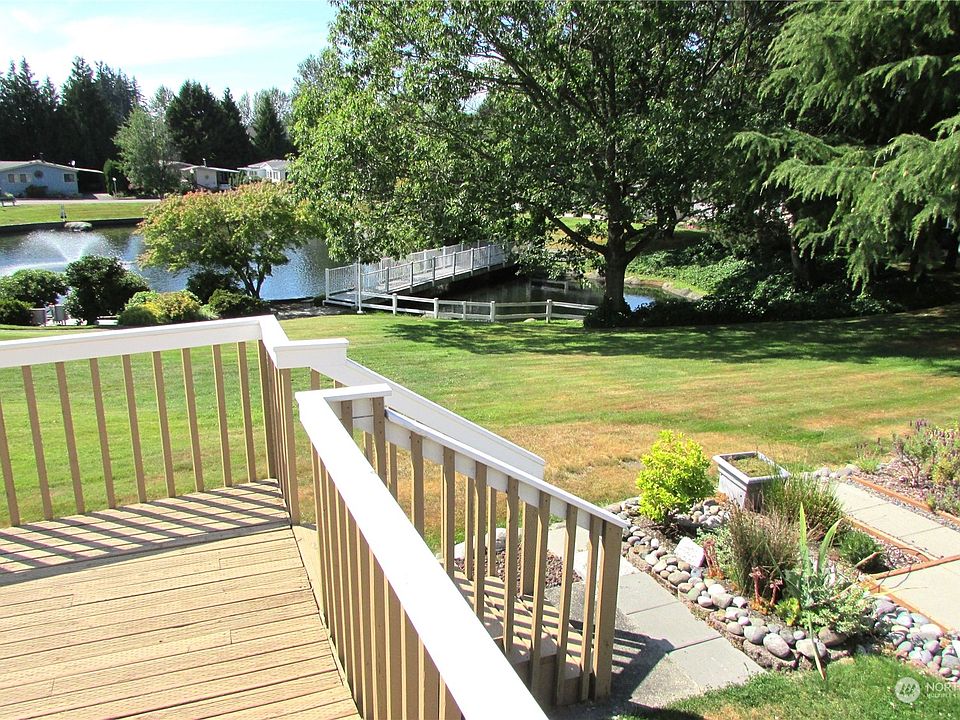 A Rare find. This home has Three bedrooms and 1.75 bathroom in one of the largest and most popular models in the park. A large kitchen with breakfast bar opens up to the Livingroom with plenty of tinted windows looking out over the pond. The home also has a large family room and nicely updated bathrooms. Nestled in a Premier senior gated community with a view of the pond. Relax on your deck and enjoy the manicured lawn and the sound of the waterfall. This is a very active community with an exercise room, monthly themed potlucks, bingo, Koffee Klatch among other activities. One mile around the parameter makes for a nice evening walk. New PEX plumbing added.