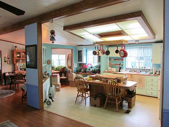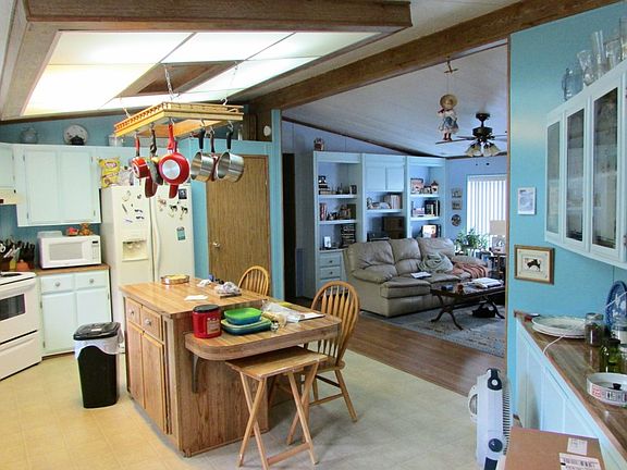 Low cost heating and cooling with Ductless heat and air. New appliances, white vinyl double pane windows. Beautiful laminate flooring through-out. Large master bedroom, large master bath with soaking tub and separate shower. Huge walk-in closet. Open style kitchen with lots of storage. Kitchen opens up to family room and separate dining and living room. Dining room has built in china hutch. Family room has built in book shelves. This is a 55+ senior park
