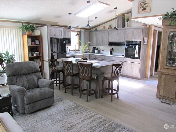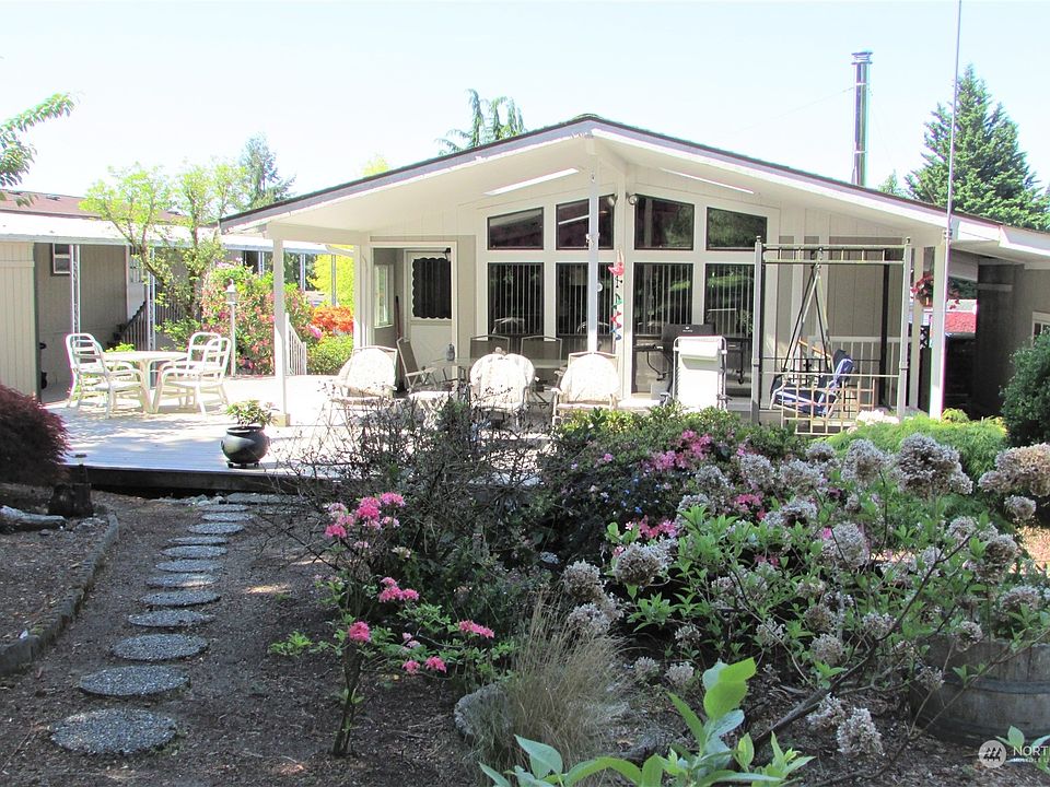 Don't miss your rare opportunity to own a home on the Golf Course. They don't come on the market often. This two bed room home has a large Trex deck looking out over a beautifully landscaped yard and a great view of the golf course. The kitchen is newly remodeled with custom cabinets, soft close doors, pull-out shelving, Luxury vinyl wood plank floor. All appliances stay. Main bath and Primary bath are both updated. Newer heat pump for lower bills in the winter, and air conditioning in the summertime. 55+ mobile home park. Home has tie downs earthquake straps.