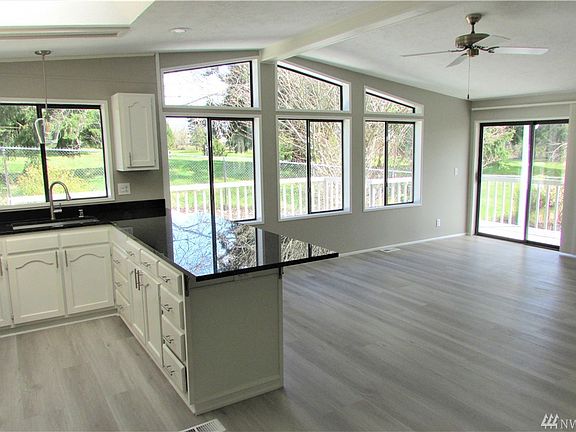 One of the best Golf Course views in the Park This home is located right up to two fairways and features three bedrooms, two full bathrooms, family room, living room, landscaped lot, a large kitchen with update SS appliances and Granite countertops opens up to the family room that leads you out to the deck where you can relax and watch the golfers. All freshly painted interior. Heat pump for warmth in Winter & Air conditioning for Summer. So if you've been searching for an affordable, pet-friendly, 55+ manufactured home community. This lively manufactured home community has a prime location next to the Walter Hall Golf Course. It's enjoying the best life has to offer with neighborhood friends, and nearby entertainment options.