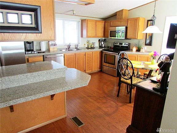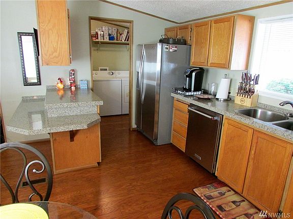 This beautiful home has many upgrades. New solid Oak hardwood floors throughout, new thermal windows, all new plumbing, new hot water tank, new ductless heat pump/air conditioning. The kitchen is just beautiful with new stainless steel appliances, and granite counter tops. It's all been done for you. Move in ready, just move in and enjoy the lively Clubhouse, with monthly potluck dinners, card games and summer BBQ. This is a Senior 55+ mobile home park.