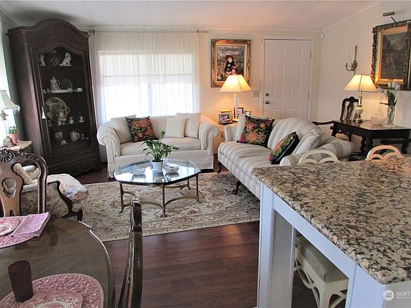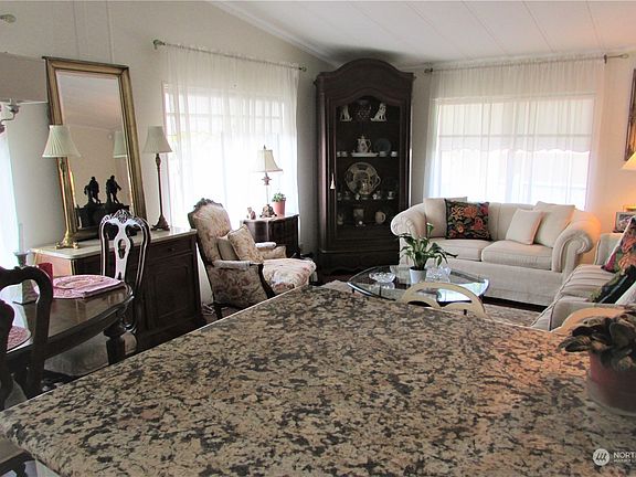 Beautifully maintained 2 bedroom, 2 bath home in desirable Fairway Estates 55+ Manufactured home park. Tastefully updated kitchen with laminate hardwood floor, granite counter tops. Laminate hardwood flooring throughout the home, both main bath and primary bath are update including beautiful granite countertops. Primary bedroom has French doors that lead out to a high-quality private deck and attractively landscaped backyard. If you’ve been searching for an affordable, pet-friendly, 55+ manufactured home community. This lively manufactured home community has a prime location next to the Walter Hall Golf Course. It's enjoying the best life has to offer with neighborhood friends, and nearby entertainment options. All appliances stay.