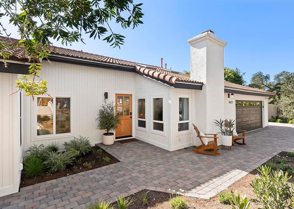 This exquisite modern styled single-level home boasts an estimated 1,586 square feet of meticulously upgraded living space, designed with an open floor plan that embraces both style and functionality. Nestled at the end of a private road within the Fire Mountain neighborhood, this home offers a blend of privacy and accessibility, making it a perfect retreat from the bustle of everyday life. The home offers three bright and comfortable bedrooms and two beautifully appointed bathrooms. The heart of the home is the upgraded kitchen, which seamlessly flows into the dining room and living area, perfect for entertaining or enjoying cozy evenings. The south facing windows provide sweeping views of the valley and lush landscape, bringing the serene outdoors in and filling the space with natural light. Situated on a sprawling half acre lot, this property highlights a large private lot adorned with a beautiful garden. Outdoor enthusiasts will appreciate beautiful sunsets on the expansive concrete patio with multiple sitting areas, ideal for dining al fresco, and a lush, secluded environment complete with mature trees, large grassy backyard, and vibrant garden. Whether you're sipping morning coffee on the patio or entertaining guests, the outdoor spaces provide endless opportunities for relaxation and enjoyment. Amenities include air conditioning for year-round comfort, two car garage, new fencing, and newly added paver driveway. Experience modern living at its finest with this Oceanside gem, where every detail has been thoughtfully curated to create a harmonious living experience.