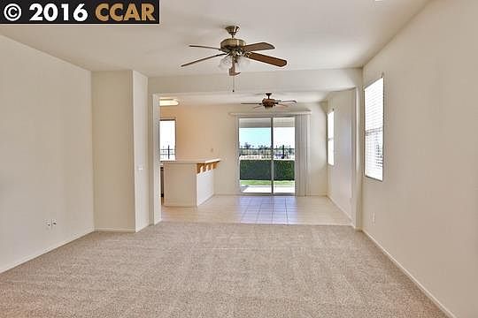 Springtime in the vineyard! This fabulous home overlooks vineyards in Summerset Commons Park. It's bright with new carpet, interior paint and an open floor plan. Kitchen has a walk-in pantry with all new stainless steel appliances, breakfast bar. Dining area with sliding door to the patio. Enjoy a sunny breakfast or shaded afternoon under the Alumawood patio cover from this lovely space with lawn area, hedge and wrought iron gates on either side. A bay window in the master suite faces the vineyard. The master bath includes a large shower with seat, double sinks and spacious walk-in closet. The second bedroom has a ceiling fan and windows to the front of the home. Access the two-car garage through the laundry room with utility sink plus electric and gas hook ups. Other amenities include water softner system, reverse osmosis and fire sprinklers. In Summerset 3, a gated 55+ community with pool, tennis and bocce courts, clubs and year-round classes. The Golf Club at Brentwood, a 27-hole public golf course winds through the development. HOA dues are $115 per month.
