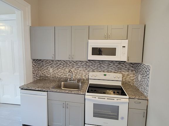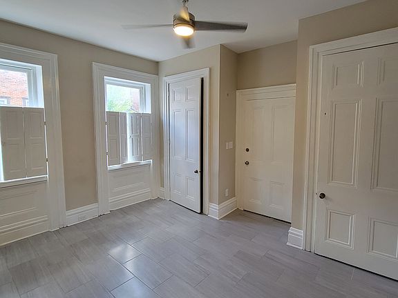 Spacious first floor apartment with open design kitchen and living room and ceramic tile flooring. Many nice touches such as over -size paneled closet doors in the living room and wood shutters on the front windows. The kitchen is equipped with a range,dishwasher, over range microwave and frig. Ideal ceiling height with modern ceiling fans add to the appeal. This is a very attractive unit with high end finishes